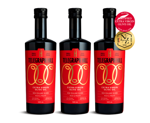 Our cold-pressed, small-batch extra virgin olive oil showcases the fresh grassy notes, buttery smoothness and delicate floral tones of New Zealand Olives, with a crisp peppery finish - perfect to elevate every dish.