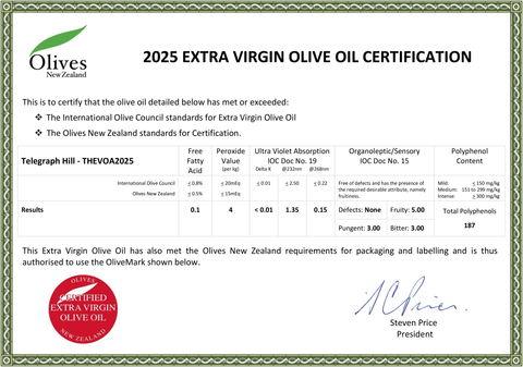 At Telegraph Hill, quality means everything. Our estate-grown olives are picked at peak ripeness and cold-pressed, using a centrifugal method that protects the oil’s flavour and antioxidant content. The result is a beautifully peppery, unfiltered oil with a creamy texture, fresh grassy aroma, and free fatty acid levels well below the 1% Extra Virgin standard. Small-batch & hand-crafted, our award-winning oils deliver exceptional taste and the full health benefits of the season’s best olives.
